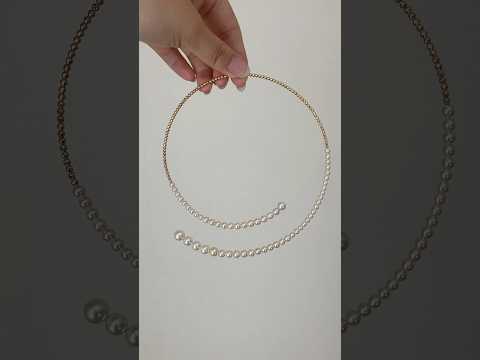 Gradient Sized Akoya Pearl & 10K Gold Beads Memory Wire Choker Necklace