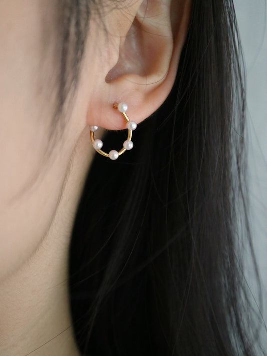 أقراط حلقية من اللؤلؤ أكويا مقاس 2.5 مم نادرة منحنيّة من الذهب الأصفر عيار 18 قيراط