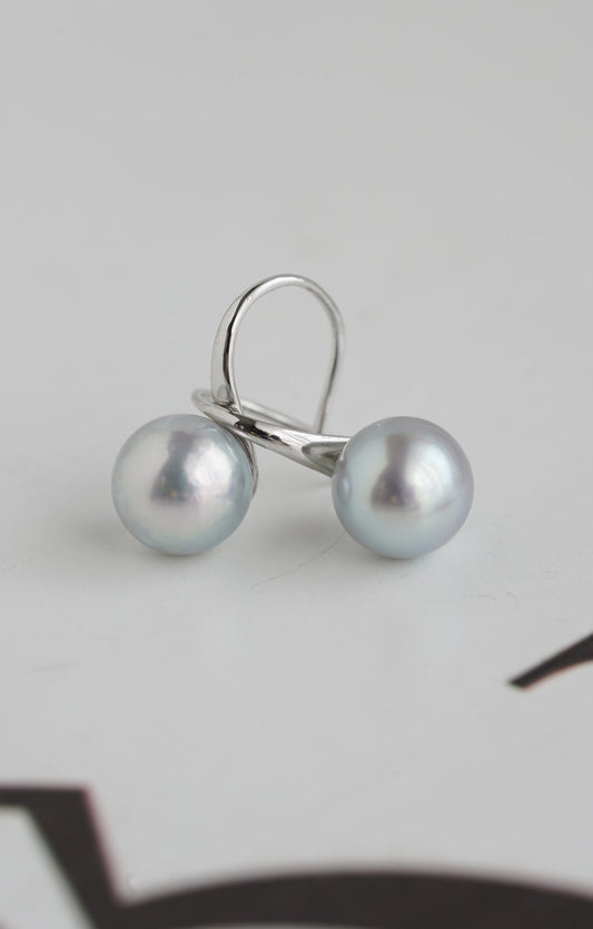 أقراط خطاف قطرة لؤلؤ أكويا طبيعي رمادي فضي 7 مم من الذهب الأبيض عيار 18 قيراط