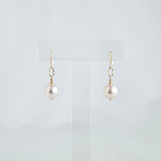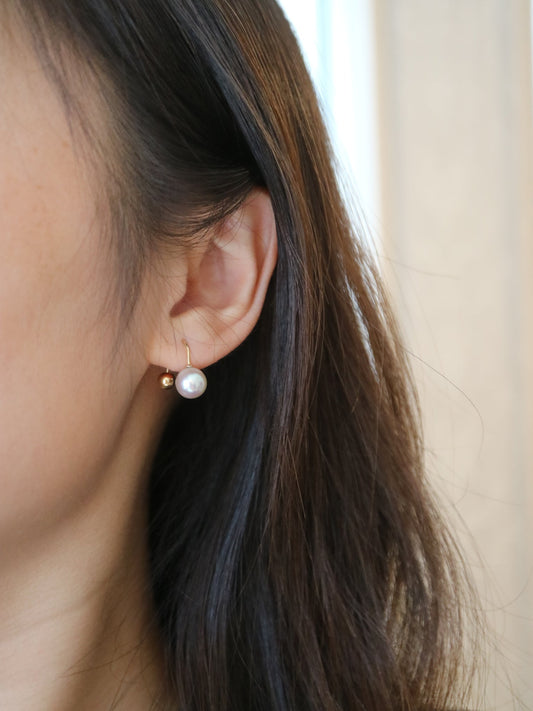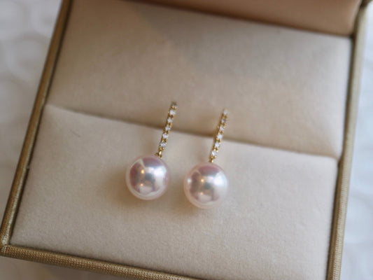 أقراط خطاف من اللؤلؤ الأكوي الأبيض المائل إلى الوردي بحجم نادر 9 مم، ذهب عيار 18 قيراط
