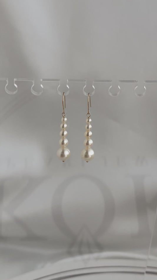 أقراط خطافية من لؤلؤ أكويا بحجم متدرج ذهبي شامبانيا