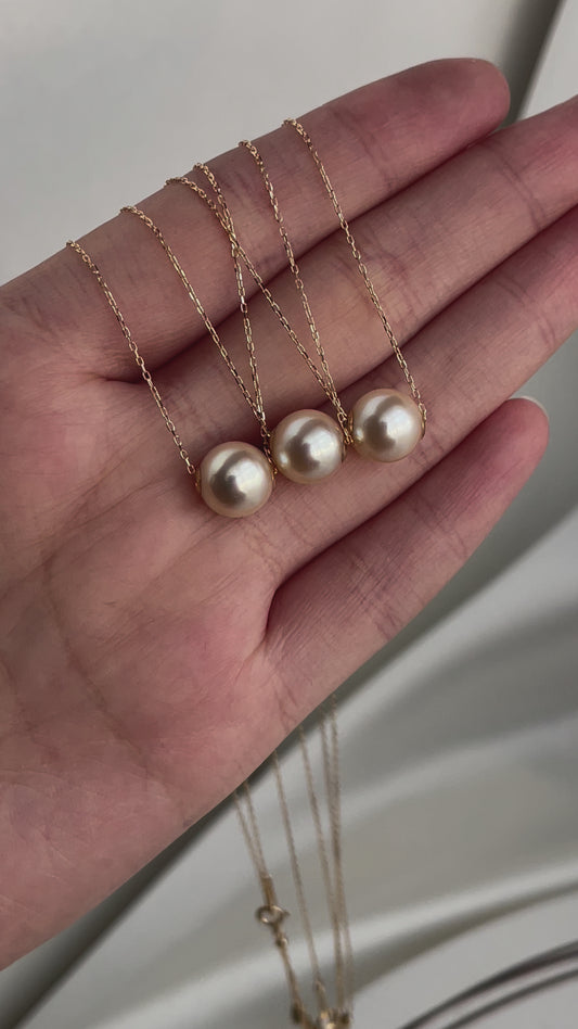قلادة قلادة عائمة من اللؤلؤ أكويا الذهبي بحجم نادر 9 مم كريمة ذهبية عيار 18 قيراط