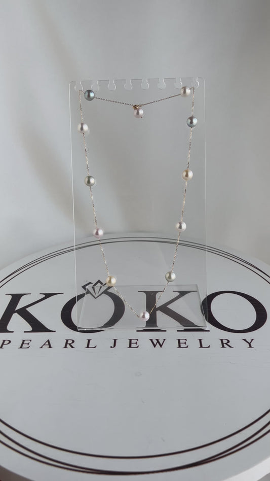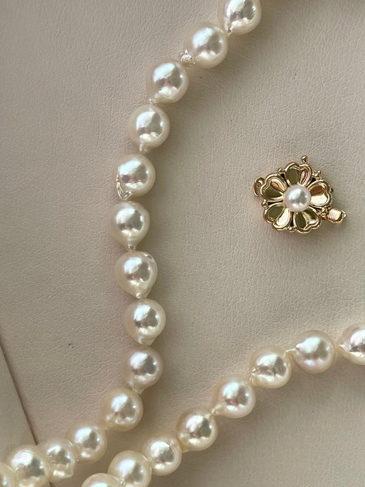 قطعة مخصصة | عقد خرز لؤلؤ أكويا طبيعي بشكل باروك ٨مم