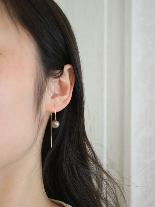 أقراط سلسلة لؤلؤة تاهيتي 8-9 مم من الذهب الأصفر عيار 18 قيراط