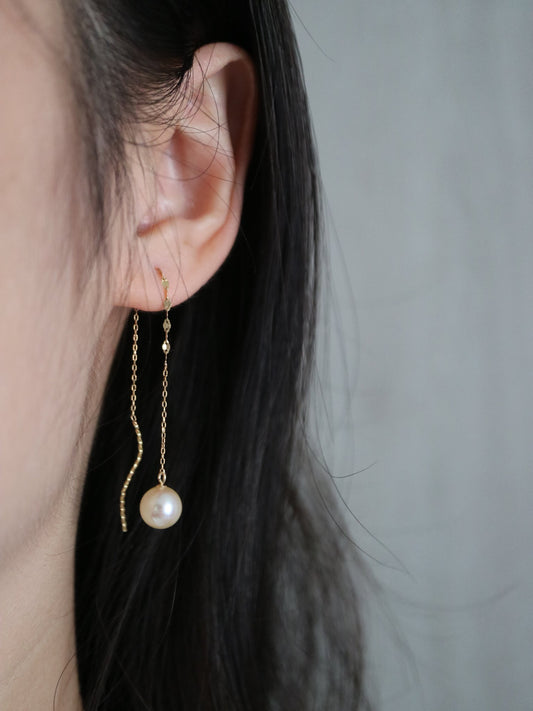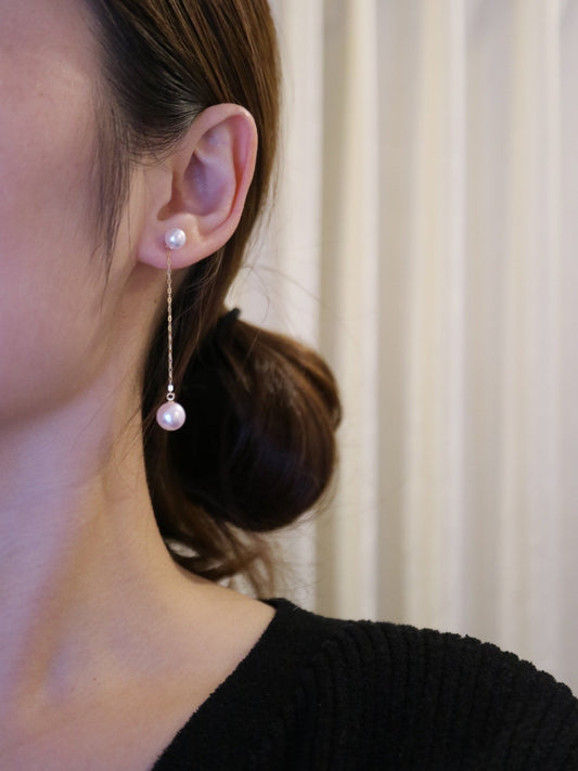 أقراط سلسلة لؤلؤ أكويا 5+8مم قابلة للارتداء بطريقتين، ذهب عيار 18 قيراط