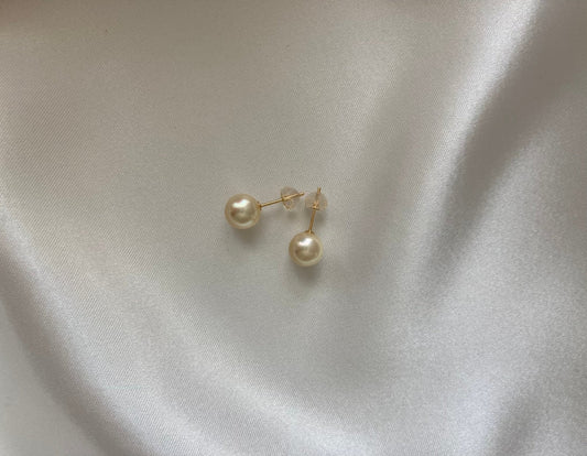 أقراط لؤلؤ أكويا ذهبية طبيعية كريمية 6.5مم 7.5مم من الذهب عيار 18