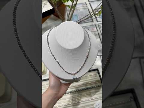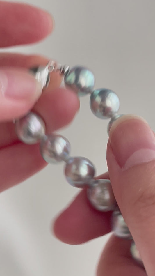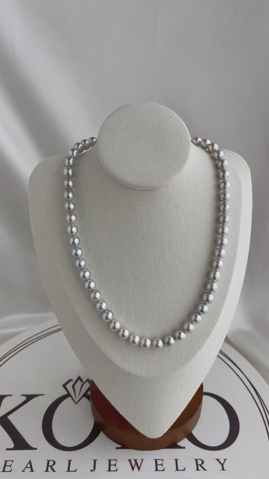 نفد المخزونعقد خرز من لؤلؤ أكويا أزرق فضي طبيعي 7.5 مم