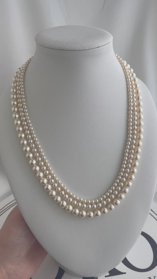 عقد لؤلؤ أكويا بطبقات ثلاث خفيفة وكريمية