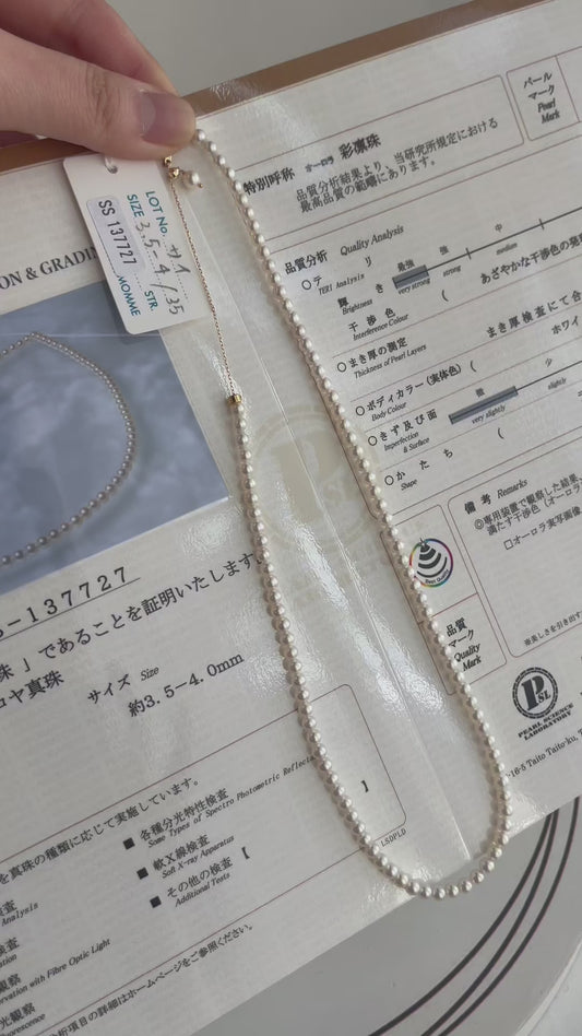 عقد خرز لؤلؤ أكويا عالي الجودة بمقاس 3.5 مم مع شهادة أورورا سايرين من PSL