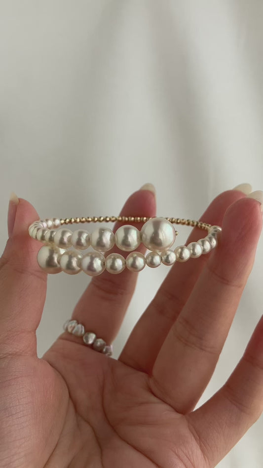 سوار سلكي مرن بحبات لؤلؤ أكويا مقاس متدرج من الذهب عيار 10K/18K