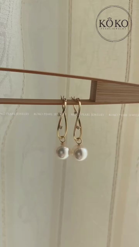 أقراط حلقية من الذهب الأصفر عيار 18 قيراط مع لؤلؤ أكويا 8 مم وألماس، يمكن ارتداؤها بطريقتين