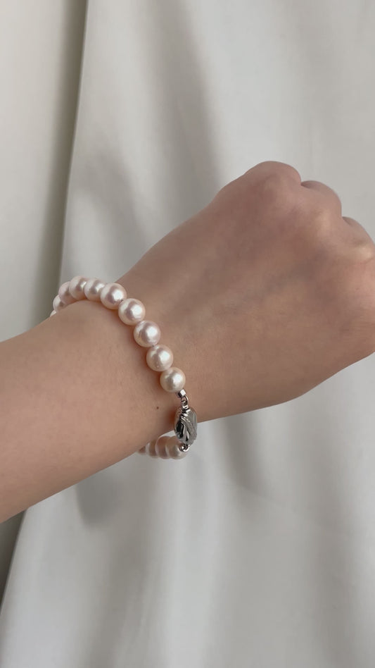 Pinkish White 7.5mm Japanese Akoya Pearl Bracelet