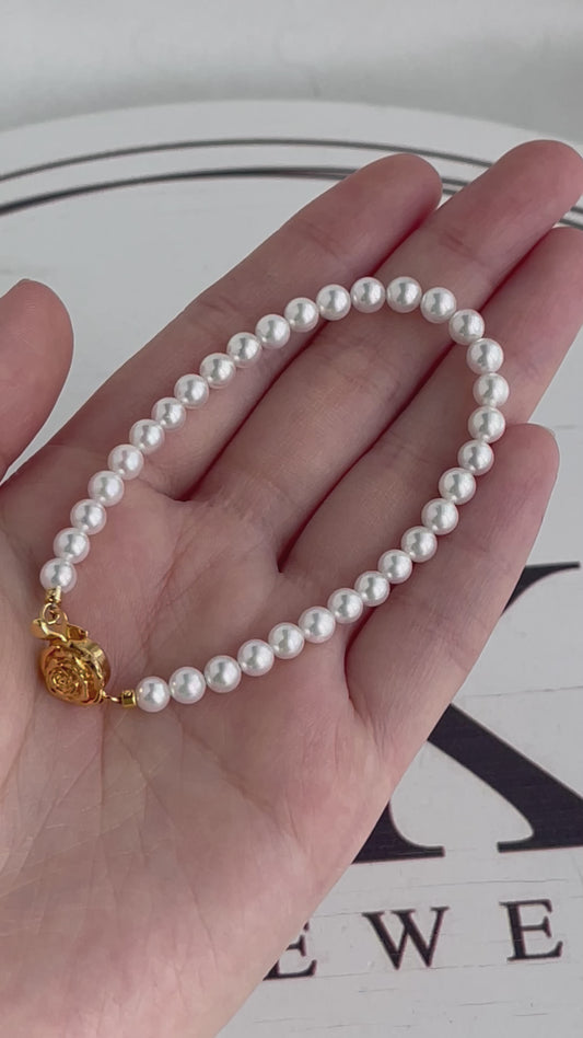 4.5mm Akoya Pearl Beaded Bracelet Rose Shaped Clasp