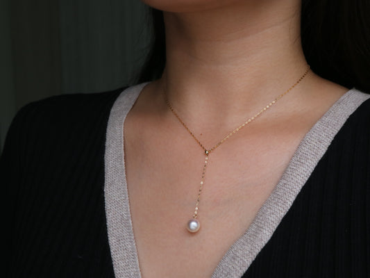 8mm Akoya Pearl Adjustable Y Shaped Pendant Necklace 18K Yellow Gold