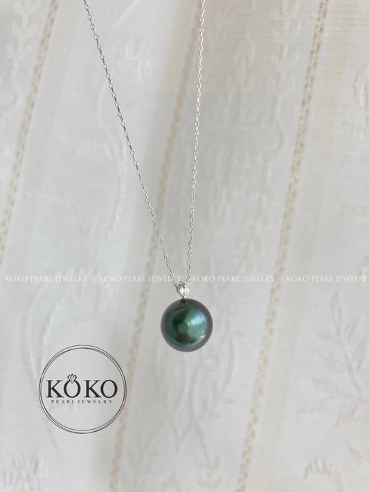 10mm Tahitian Pearl Pendant Necklace with Diamond – 18K White Gold
