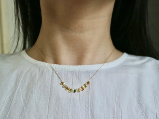 Rare Sized 2.5mm Akoya Pearl Rainbow Color Sapphire Smile Necklace 10K Yellow Gold