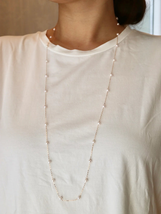 90cm 4.5mm Akoya Pearl Station Long Necklace 18K Yellow Gold