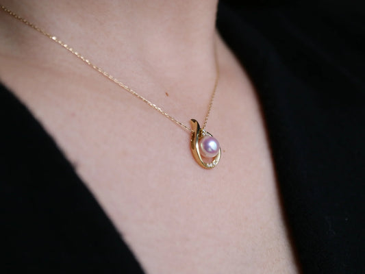 Akoya Pearl Diamond Pendant Necklace – 8–8.5 mm, 18K Gold