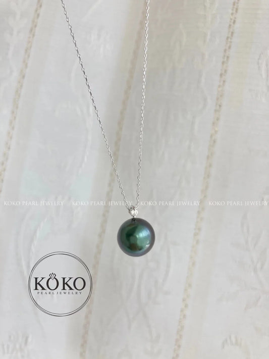 10mm Tahitian Pearl Pendant Necklace with Diamond – 18K White Gold