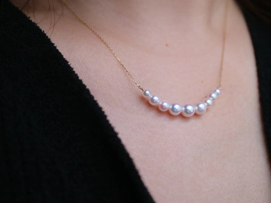 3.5-6mm Gradient Sized Akoya Pearl Smile Pendant Necklace 18K Yellow Gold