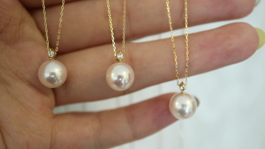 아코야 진주 다이아몬드 펜던트 목걸이 – 8–8.5mm, 18K 골드