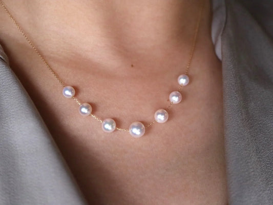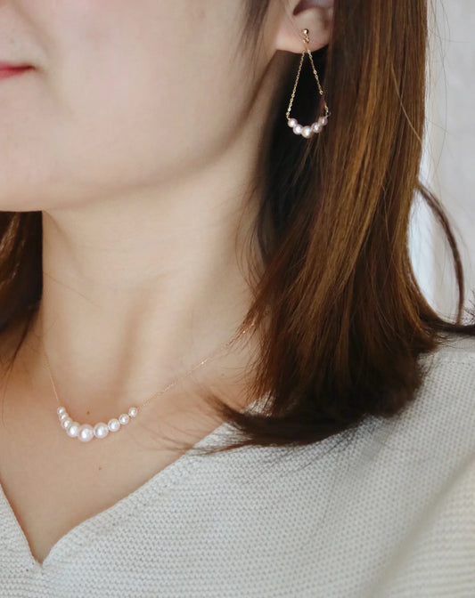 2.5-6mm 그라데이션 사이즈 아코야 진주 스마일 플로팅 펜던트 목걸이 18K 옐로우 골드