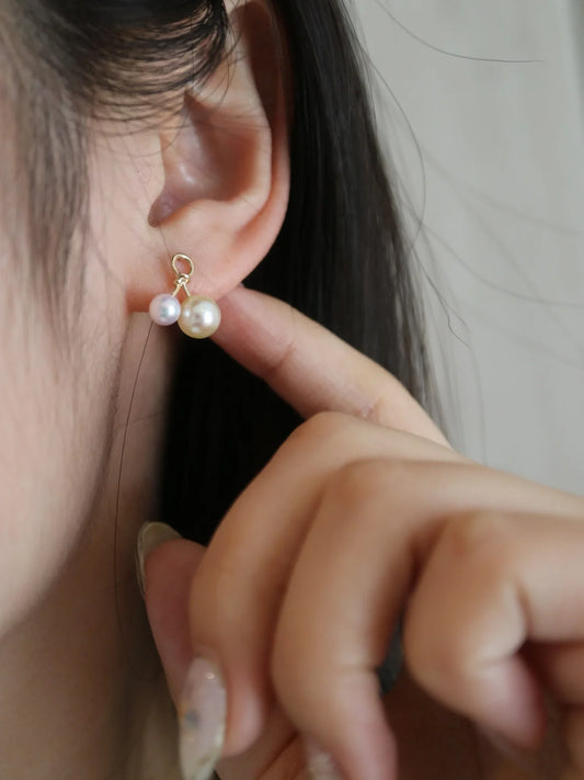 4.5mm + 6.5mm 더블 컬러 아코야 진주 리틀 체리 스터드 귀걸이 10K 옐로우 골드