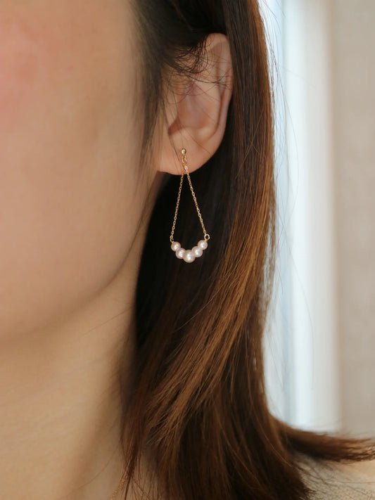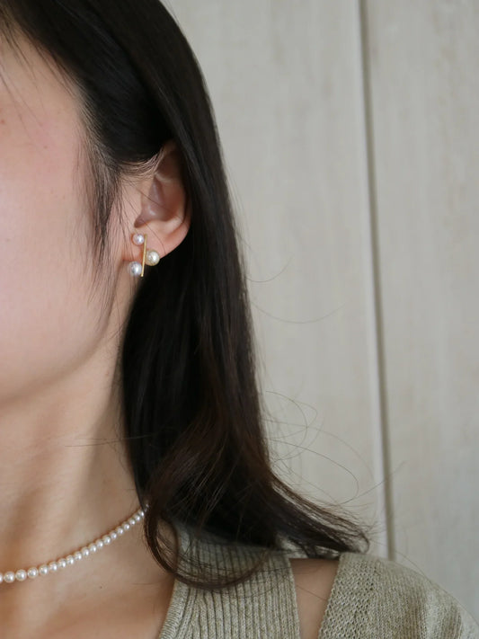 클립 귀걸이 가능丨2가지 스타일 착용 3.5+5.5mm 아코야 진주 드롭 귀걸이 18K 옐로우 골드