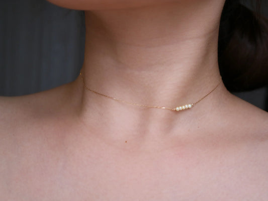 5-6.5mm 아코야 진주 스마일 스테이션 목걸이 18K 옐로우 골드