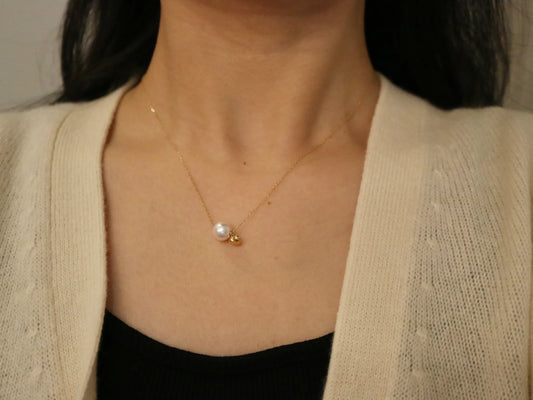 8mm 아코야 진주 플로팅 펜던트 팔찌 18K 옐로우 골드