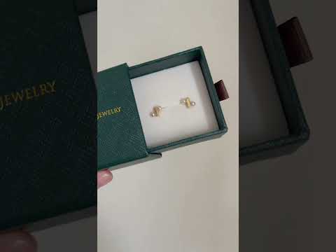 희귀 사이즈 3mm 아코야 진주 퍼센트 기호 바 스터드 귀걸이 18K 옐로우 골드