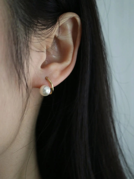 4.5-6.5mm 아코야 진주 리틀 갤럭시 후프 귀걸이 18K 옐로우 골드