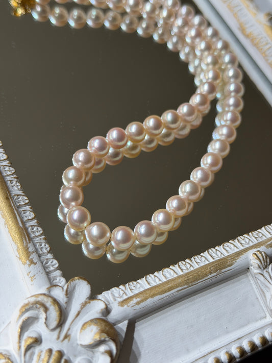 Only One Available | 희귀한 복숭아빛 핑크 7.5mm 아코야 진주 목걸이 골든 플라워 클라스프