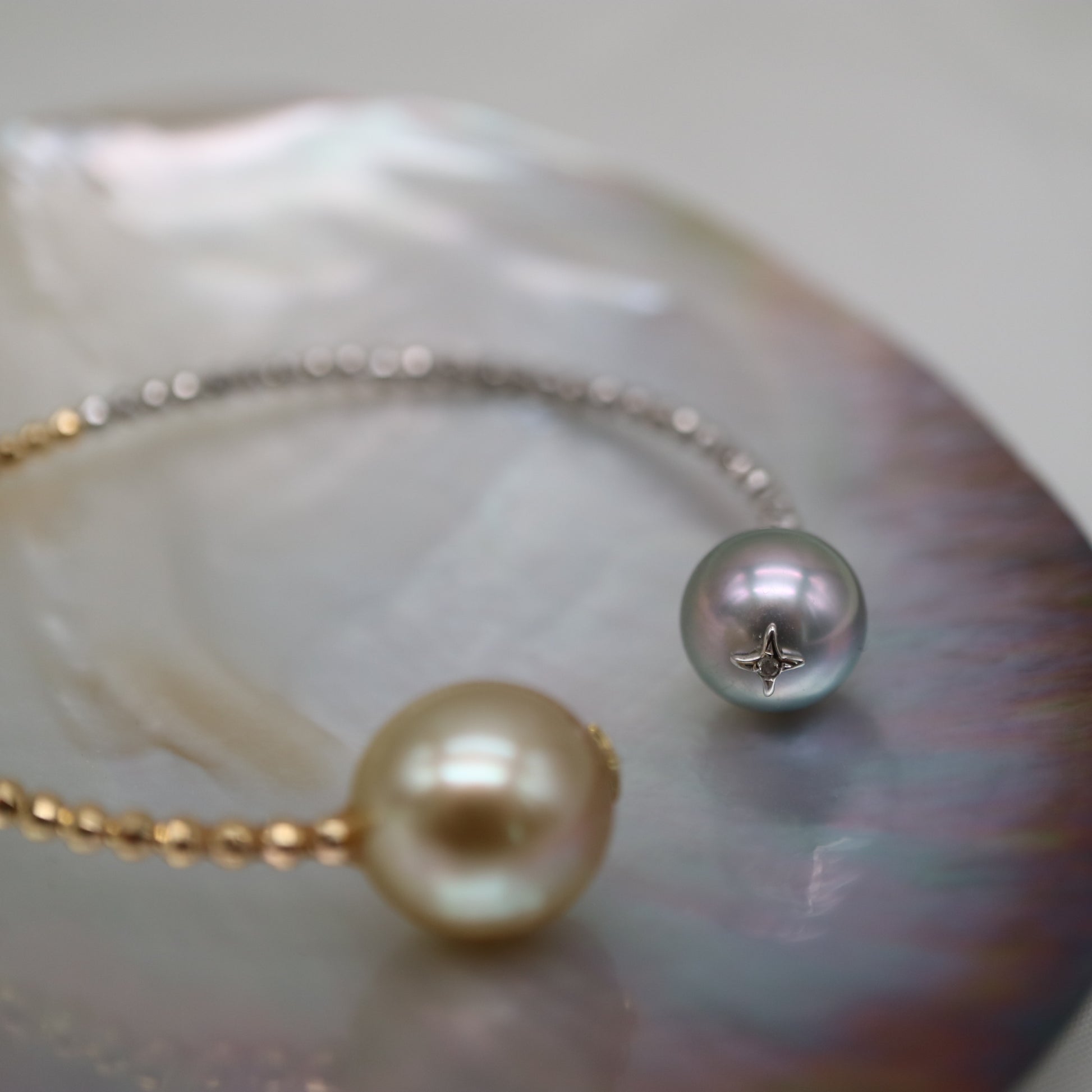 저희는 주로 일본 아코야 진주를 사용합니다. 또한 해외에서 수입한 남해 진주와 타히티 진주도 품질과 아름다움을 엄선하여 제공합니다.