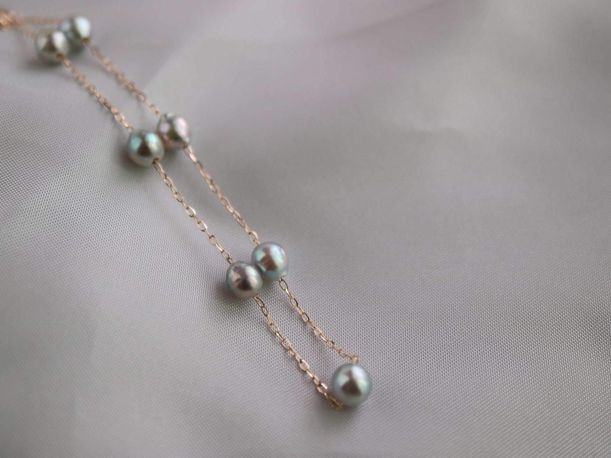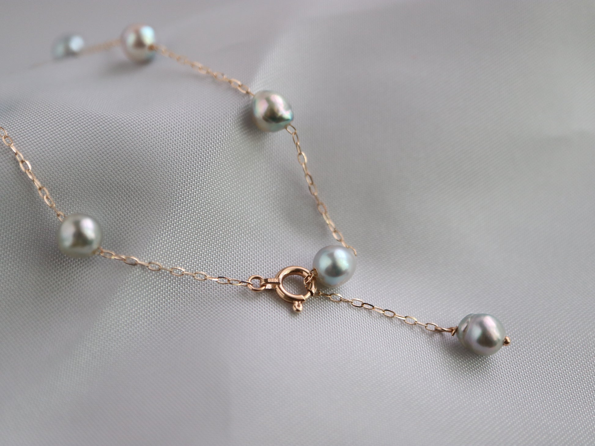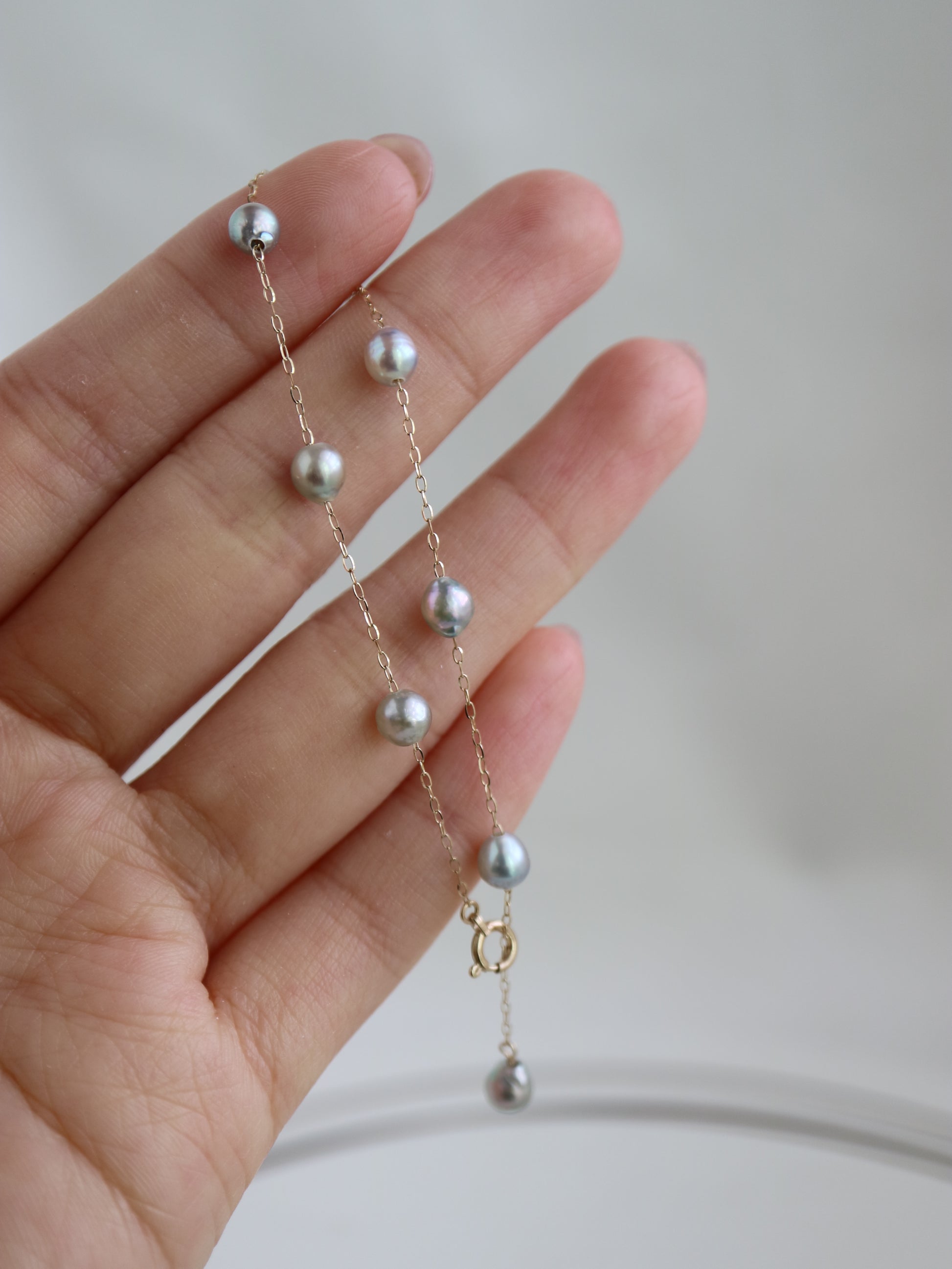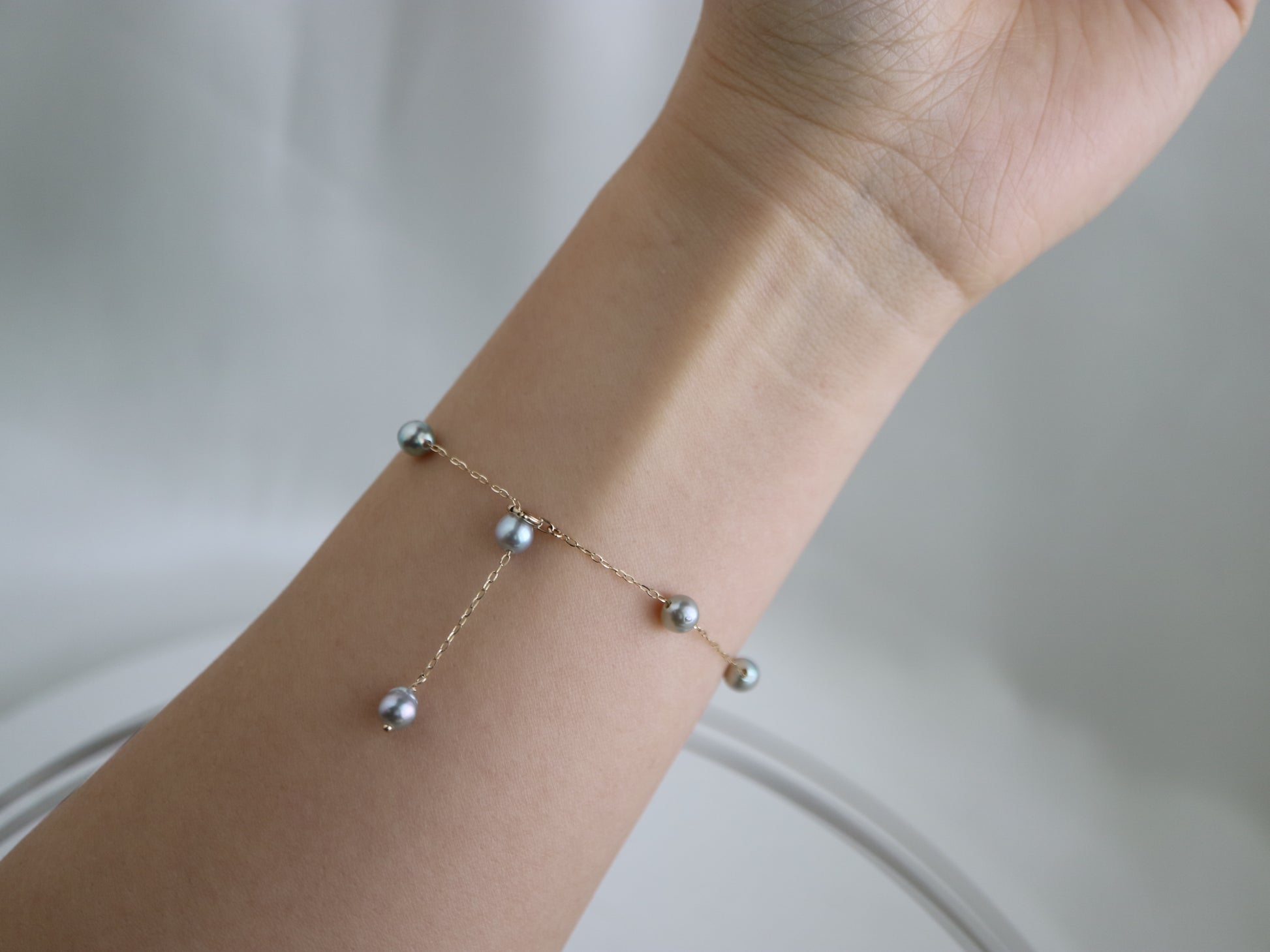 바로크형 천연 실버 블루 아코야 진주 스테이션 팔찌 K10YG