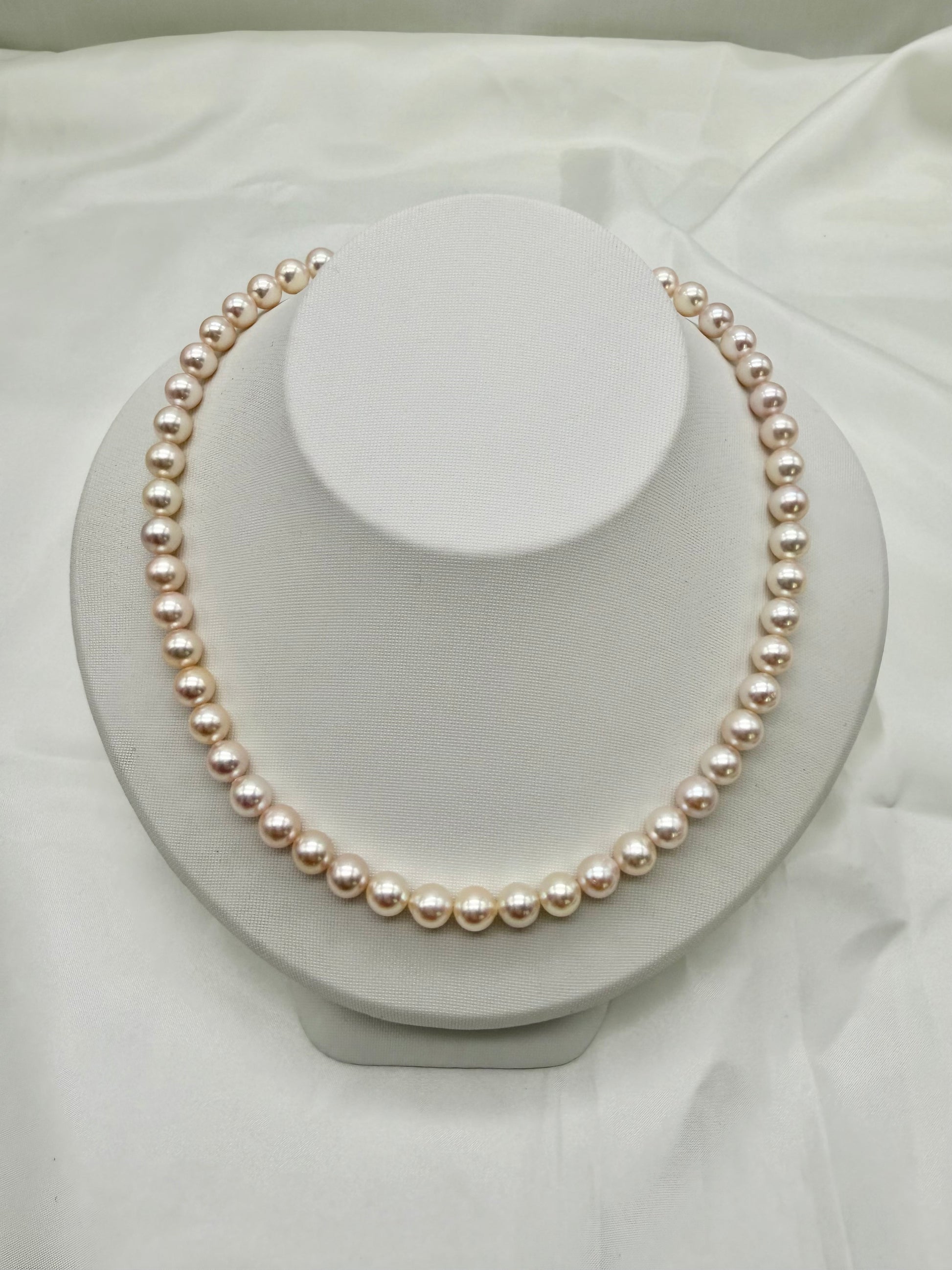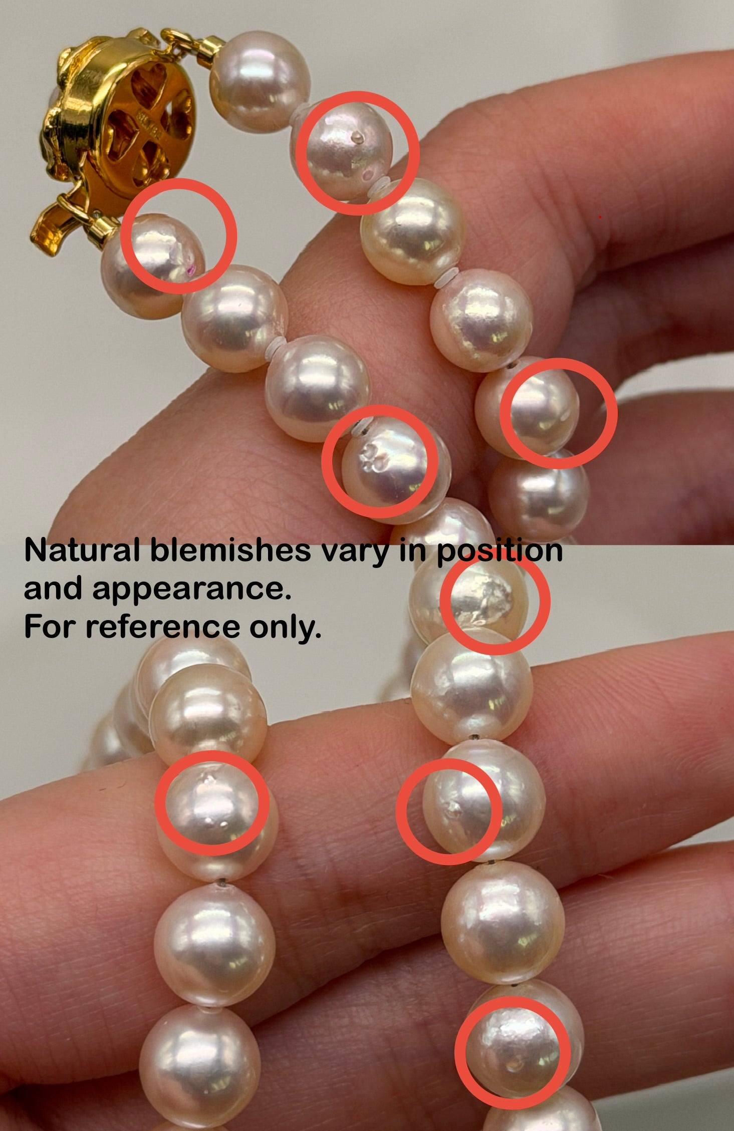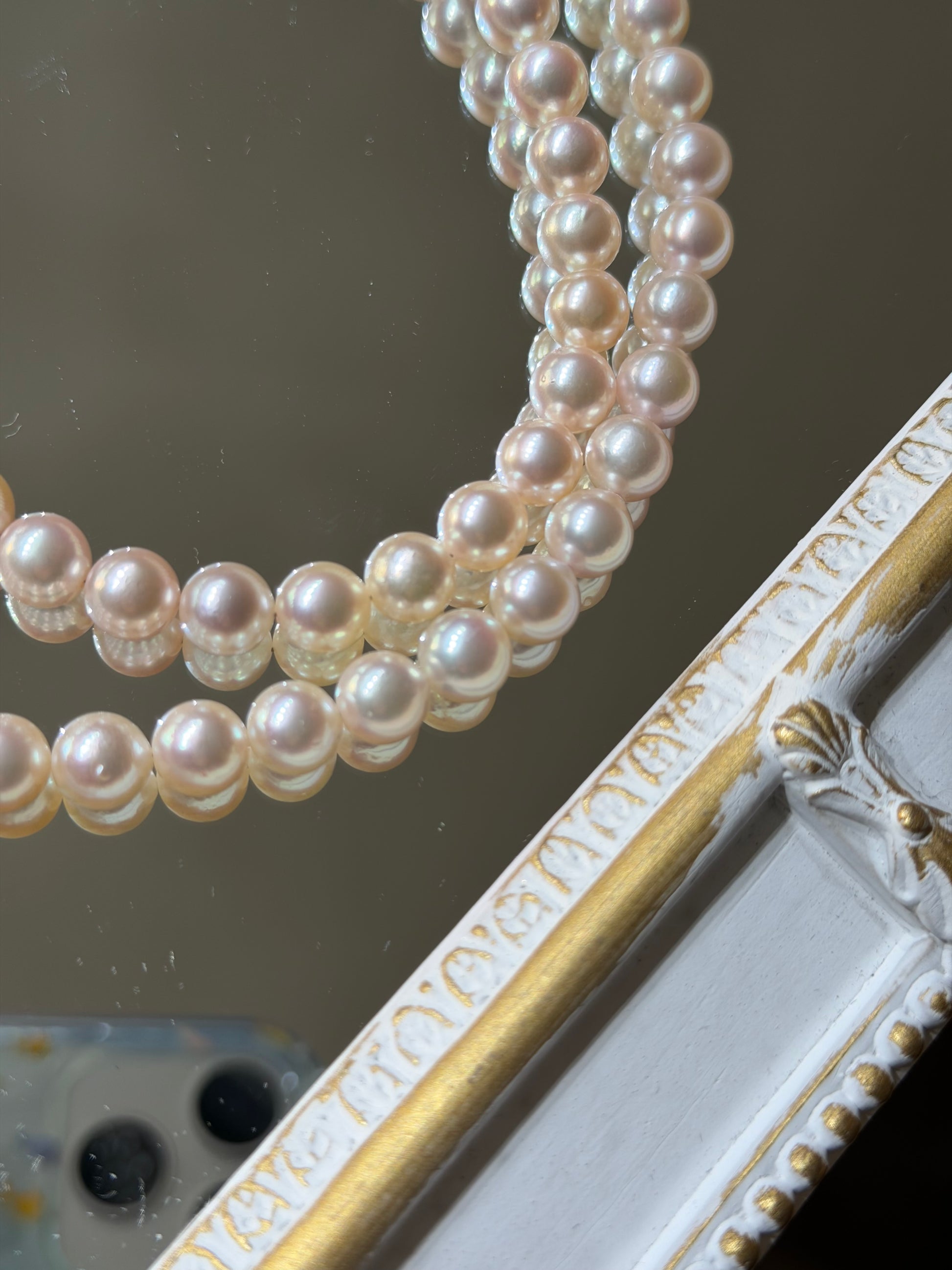 Only One Available | 희귀한 복숭아빛 핑크 7.5mm 아코야 진주 목걸이 골든 플라워 클라스프