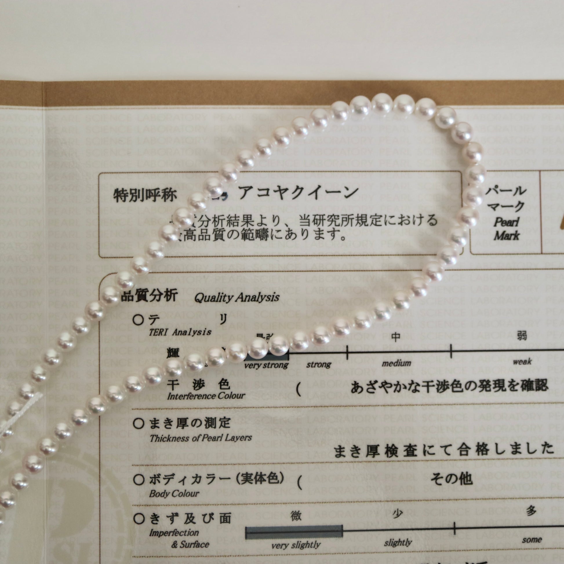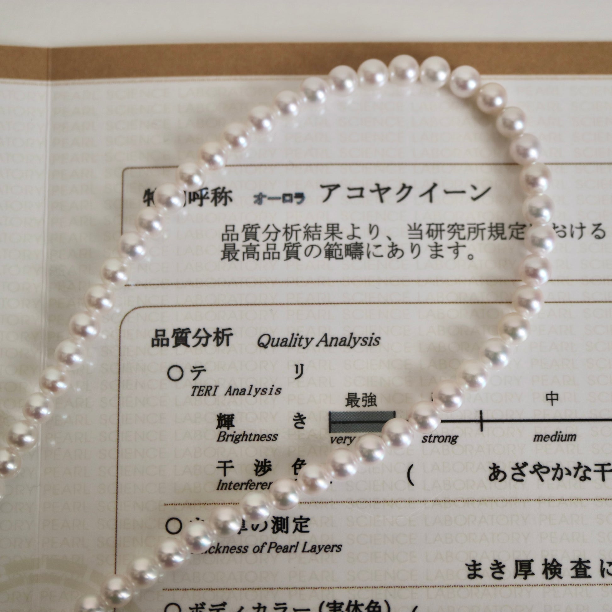 Aurora Akoya Queen은 진주 과학 연구소(PSL)에서 인증한 황색 계열 아코야 진주 중 최고 품질 등급입니다.