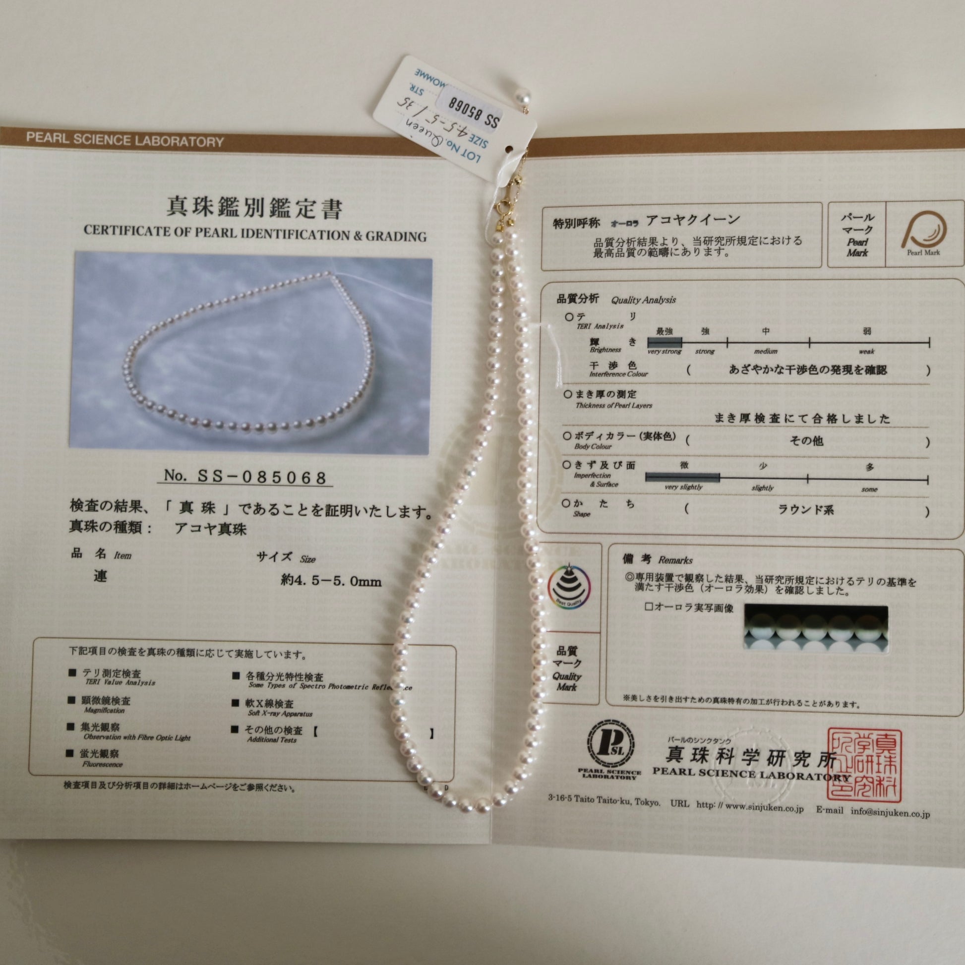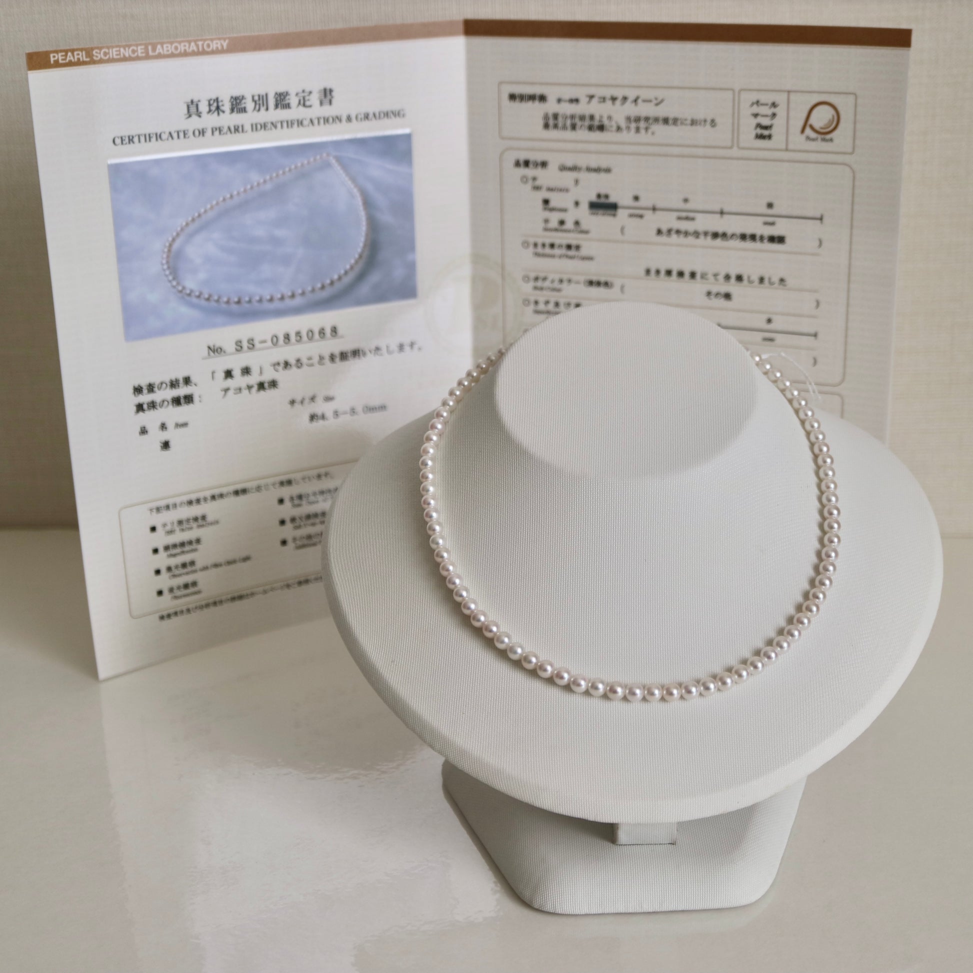 PSL 인증 Aurora Akoya 퀸 4.5mm 아코야 진주 비즈 목걸이 18KYG