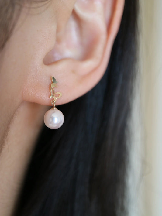 Anting-anting Juntai Bentuk Kupu-kupu Mutiara Akoya 6.5mm Emas 10K