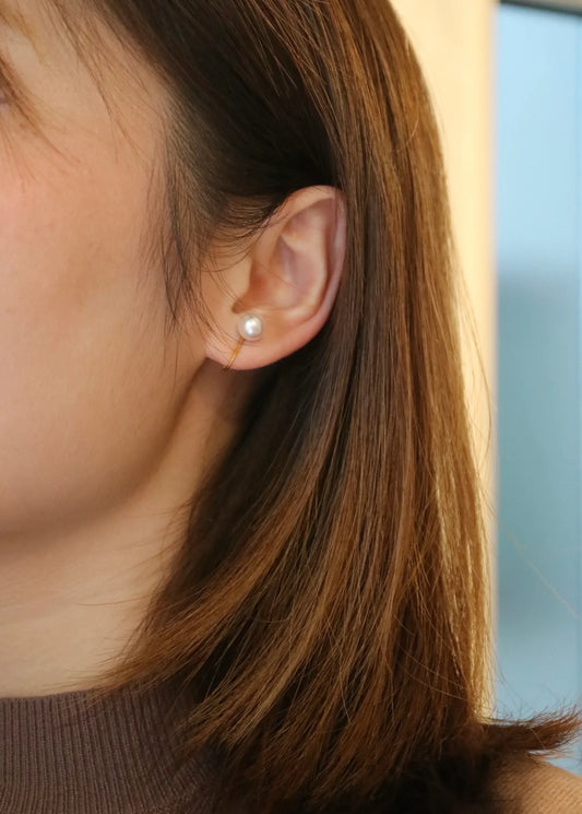 Subang Gelung Galaxy Kecil Mutiara Akoya 4.5-6.5mm Emas Kuning 18K