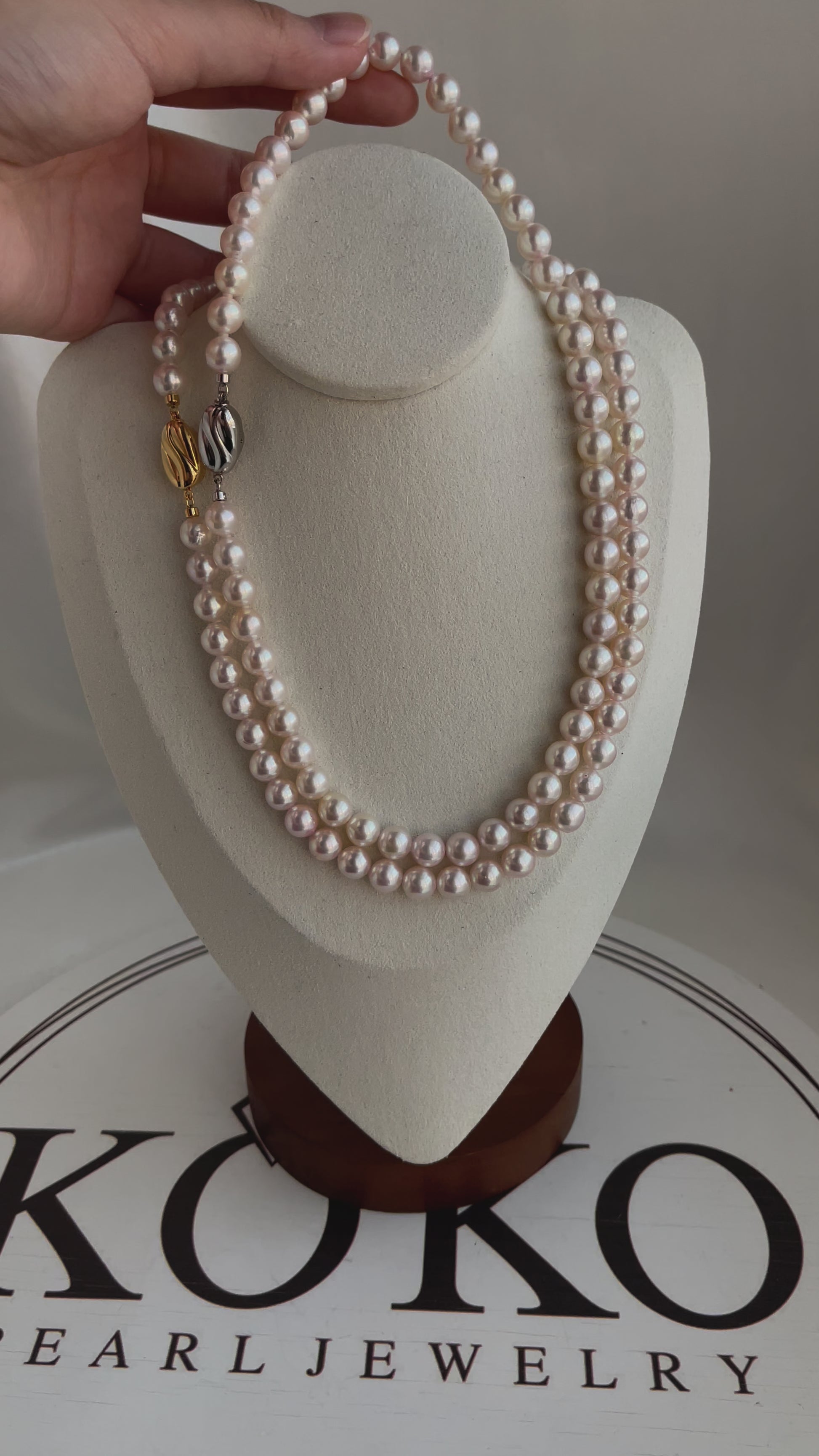 Pinkish White 7.5mm Akoya Pearl Strand Necklace