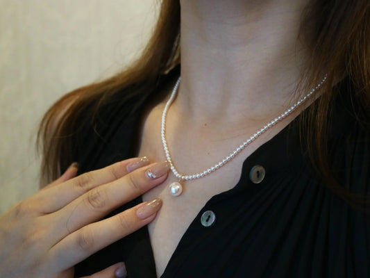 Rare 2.5–3mm Chuỗi Vòng Cổ Ngọc Trai Akoya với Mặt Dây Chuyền 8mm Có Thể Tháo Rời