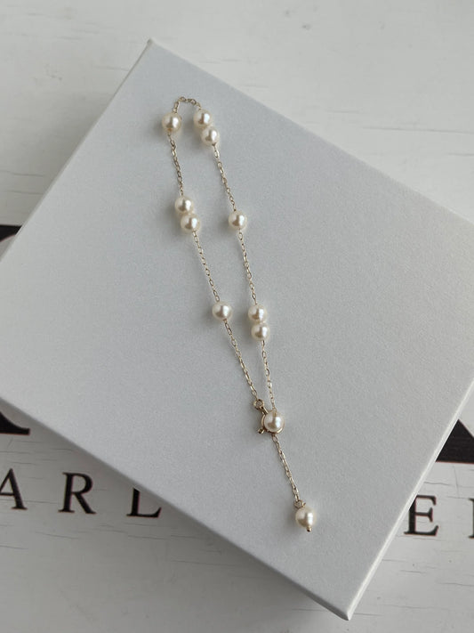 Vòng tay hạt ngọc trai Akoya tinh tế 4–4.5mm bằng vàng vàng 18K