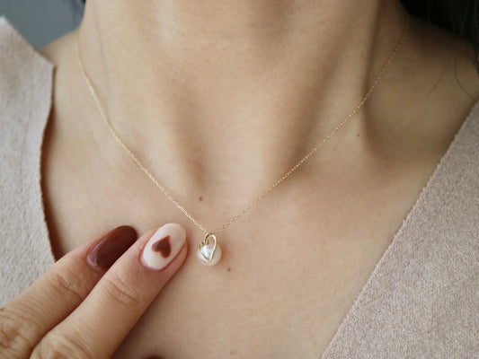 7.5mm Mặt Dây Chuyền Trái Tim Nhỏ Ngọc Trai Akoya Nổi 10K Vàng