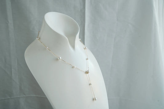 8mm Dây chuyền chữ Y điều chỉnh ngọc trai Akoya màu kem tự nhiên vàng 18K