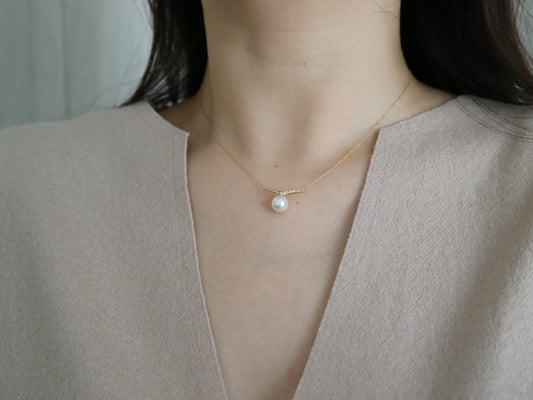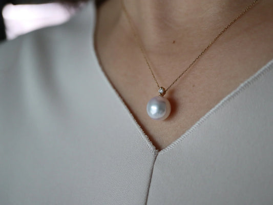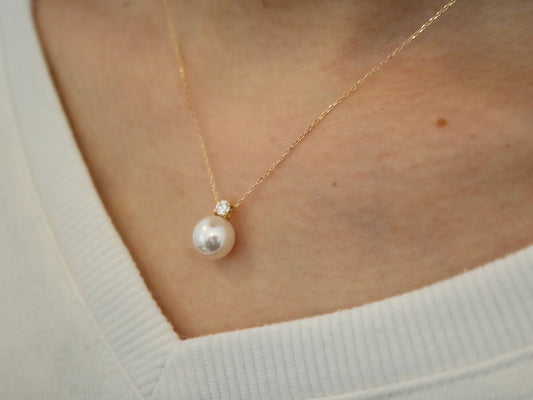 Rare Size 9mm Akoya Pearl 0,03ct Mặt Dây Chuyền Kim Cương Vòng Cổ Vàng 18K Màu Vàng