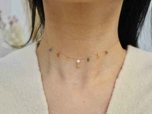 Dây chuyền mặt dây chuyền ngọc trai Akoya hình trái tim vàng kết hợp đá Sapphire nhiều màu 10K vàng