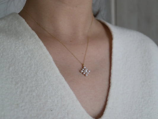 Akoya Pearl Mặt Dây Chuyền Hình Bông Tuyết Thánh Giá Vàng 18K & Kim Cương