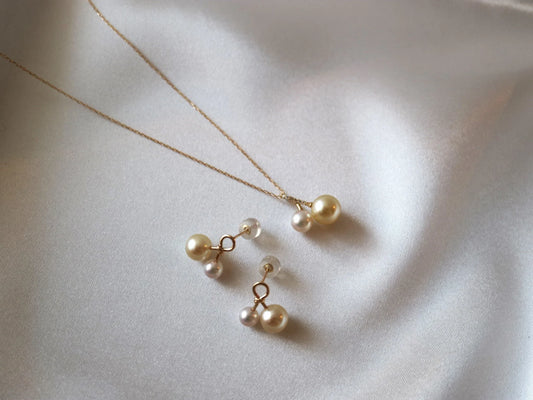 5mm + 7.5mm Mặt Dây Chuyền Cherry Nhỏ Ngọc Trai Akoya Hai Màu Kim Cương 18K Vàng Vàng