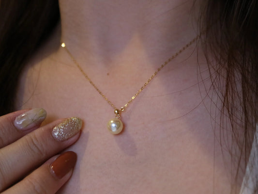 Rare Size Cream Golden 9mm Akoya Pearl Dây chuyền Mặt dây chuyền nổi Bạc 18K Vàng vàng